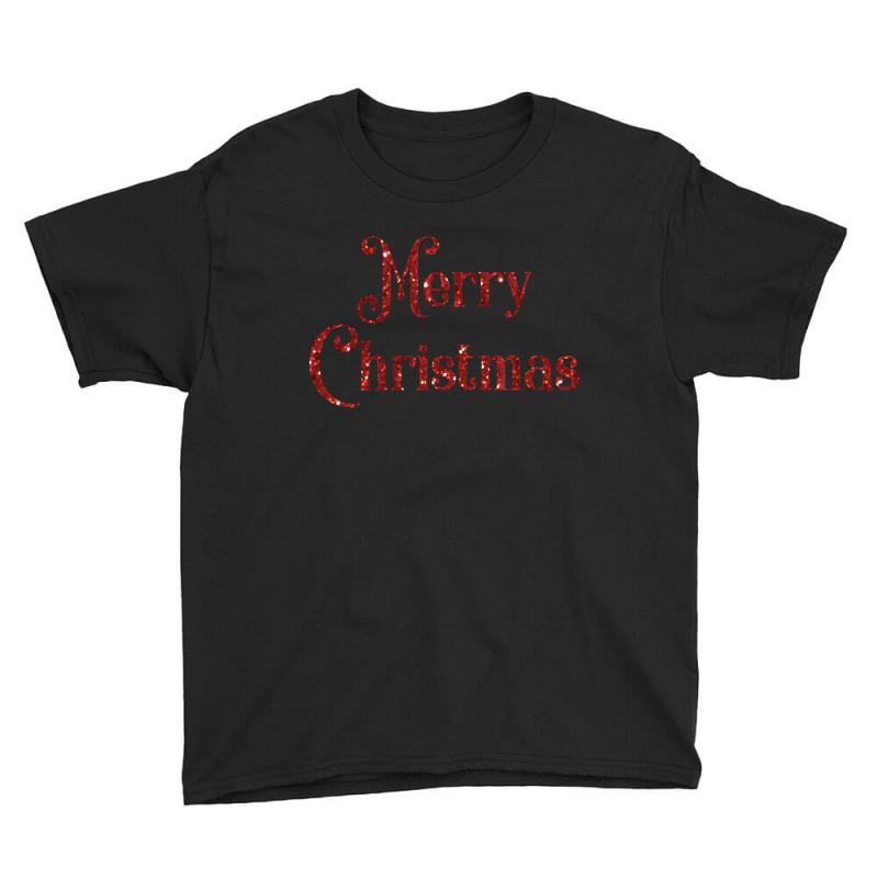 merry christmas red glitter Youth Tee