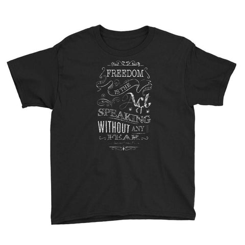 Designed by (MDK ART) FeaturesThe classic T-shirt. A great fit for both boys and girls. 4.5 oz., pre-shrunk 100% combed ringspun cotton, 30 singles Heather Grey is 90/10 cotton/polyester, Heather colors are 40/60 cotton/polyester Shoulder-to-shoulder taping Double-needle stitching throughout Tubular construction TearAway label Size Chart Size Body Length (inches) Body Width (inches) XS 20 1/2 16 S 22 17 M...